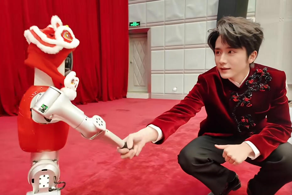 机器人在后台与张新成握手 图片来源:春晚视频号截图