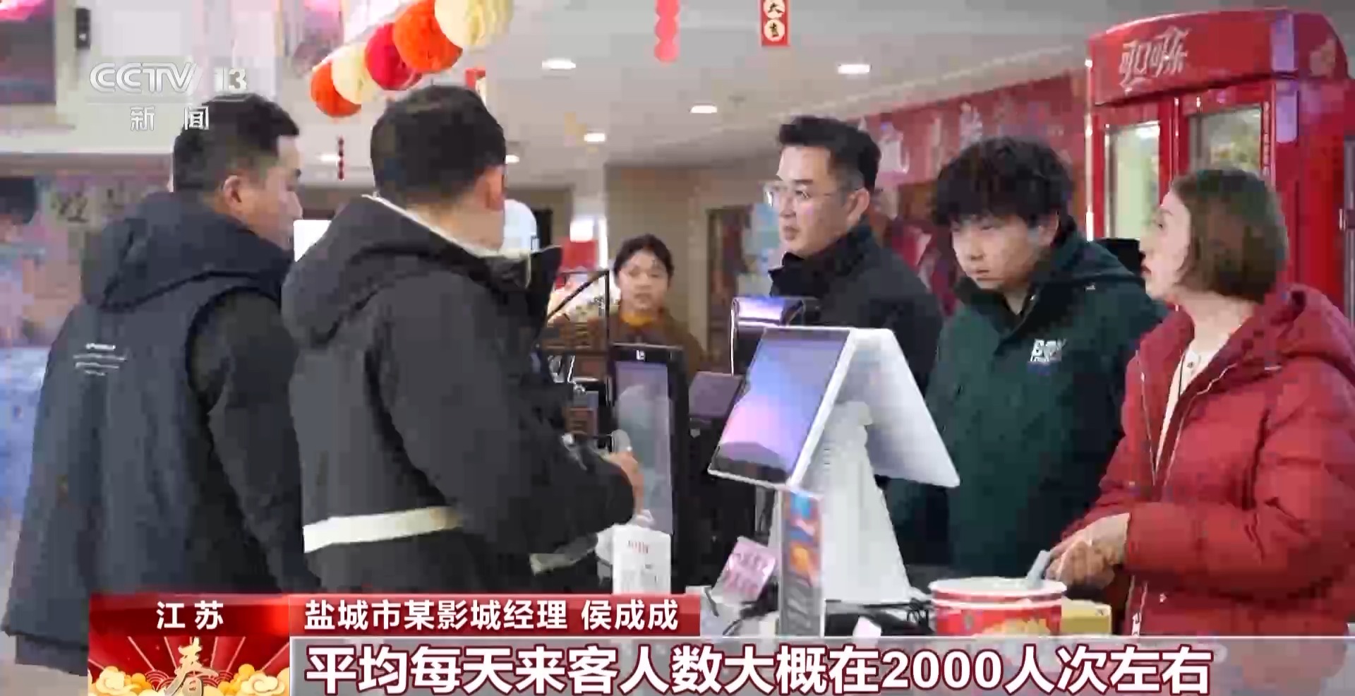 盐城市某影城经理 侯成成:平均每天来客人数在2000人次左右,我们影院设有六个厅,营业时间从早上八点到晚上十二点半。