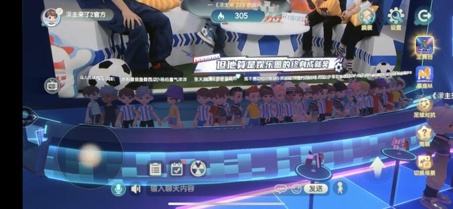 在这里,玩家不仅可以抢鲜聆听夏花女孩的3首新歌《出来嗨》、《点绛唇》、《自己的轮廓》,还能欣赏资深球迷、歌手苏醒的《最佳看球姿势》《Dream》以及冬奥冠军、欢乐“濛主”王濛的《向未来奔跑》《重返十七岁》等高燃歌曲,玩家可以在酷炫灯光和动感音乐所营造的热闹氛围下,跟着节奏一起沉浸式蹦迪摇摆。边听边嗨之余,别忘了接收从天而降的惊喜——一大波“神奇足球”将随机掉落,被砸中的玩家将即刻变大、变强,分分钟成为蹦迪舞台的焦点,和同场玩家开启一场“强者的较量”!