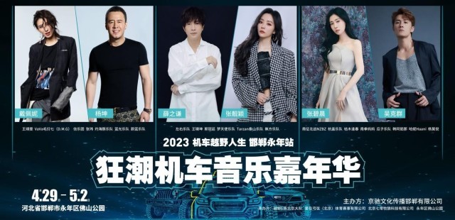 狂潮机车音乐节众星璀璨,薛之谦、张靓颖、杨坤、张碧晨、吴克群、信乐团、王靖雯、戴佩妮、杭盖乐队、南征北战、無方乐队等百余名知名歌手乐队五一假期陪你嗨翻天!