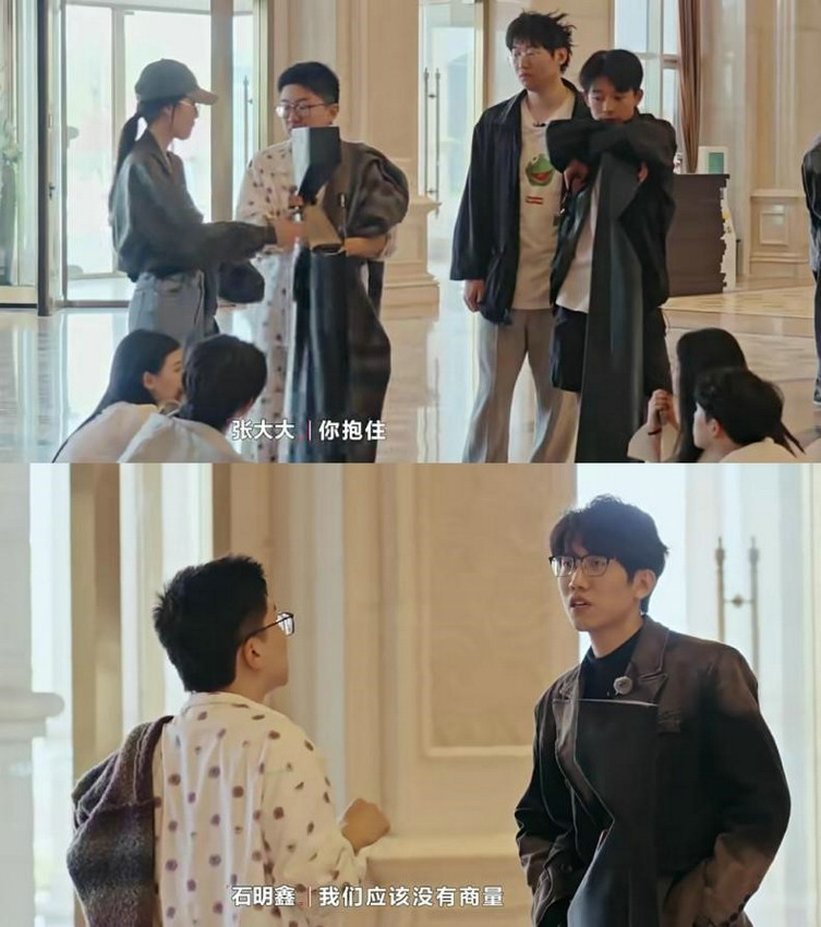 张大大抱住柱子不让他人报名