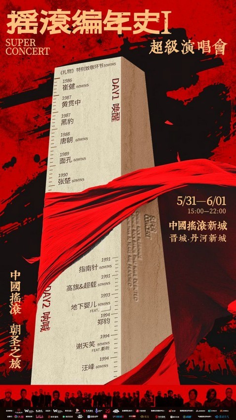 2025年5月31日至6月1日,一场被誉为“中国摇滚里程碑式重聚”的大型演出——“摇滚编年史-超级演唱会”将在山西省晋城市丹河体育场盛大举行。此次演出集结12支中国殿堂级乐队,并将携手多位重量级音乐人/乐队做特别呈现,随着N大亮点的发布,引发全国乐迷全网热议,社交平台热度直线飙升,并被众多乐迷称为“有生之年”系列演唱会,这场全国瞩目的摇滚音乐盛会势必将点燃中国摇滚新的高燃时刻。